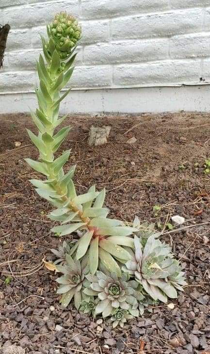My succulents, many of them, got kinda funky this summer with tall shoots and flowers. I thought it was pretty cool; figured it was because this is their third summer and they’re maturing. The flowers have dried up, so I googled whether or not to deadhead and, if yes, the best way to go about it.
