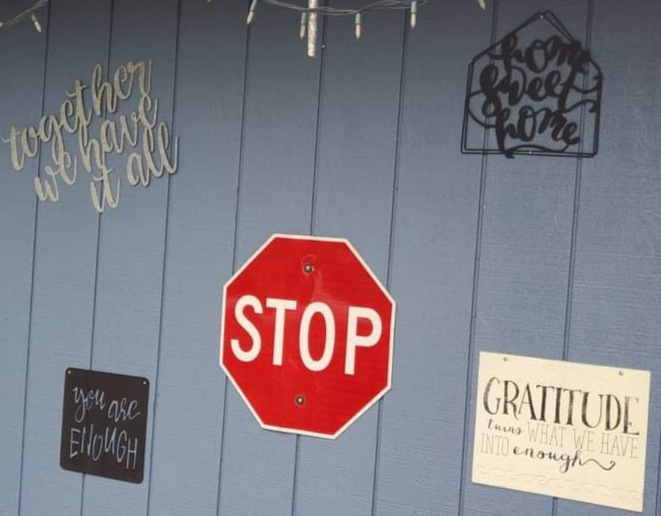 I wondered, one day not long ago, what my house says about me. I’ve had current paint colors and decor for quite a while, but I used to be able to paint the walls myself; so, I don’t necessarily want to redecorate. I also don’t want my home to look like it’s frozen in time. I decided to go out in my front yard, starting there to walk through, viewing living and dining room, kitchen, bedroom, bathroom, and deck with fresh eyes. I wasn’t expecting my home to speak to me so clearly, well, not after the confusion of front porch signs.