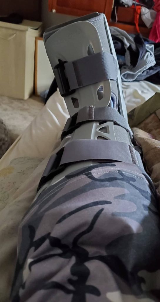 After hobbling around for two weeks, I finally got a boot! I’ve been trying to get one since the x-rays showed a broken fibula four days ago. Orthopedics took new pictures today, which showed a spiral fracture of the fibula and a probable fracture of the tibia. The physician assistant who saw me today said he’ll be grabbing the surgeon first thing in the morning tomorrow and then he’ll call me with the plan. Suppose he wouldn’t feel the need to show the x-rays to the surgeon first thing in clinic if it’s not looking like surgical repair. For now, the PA directed me to do absolutely no weightbearing on that left leg.